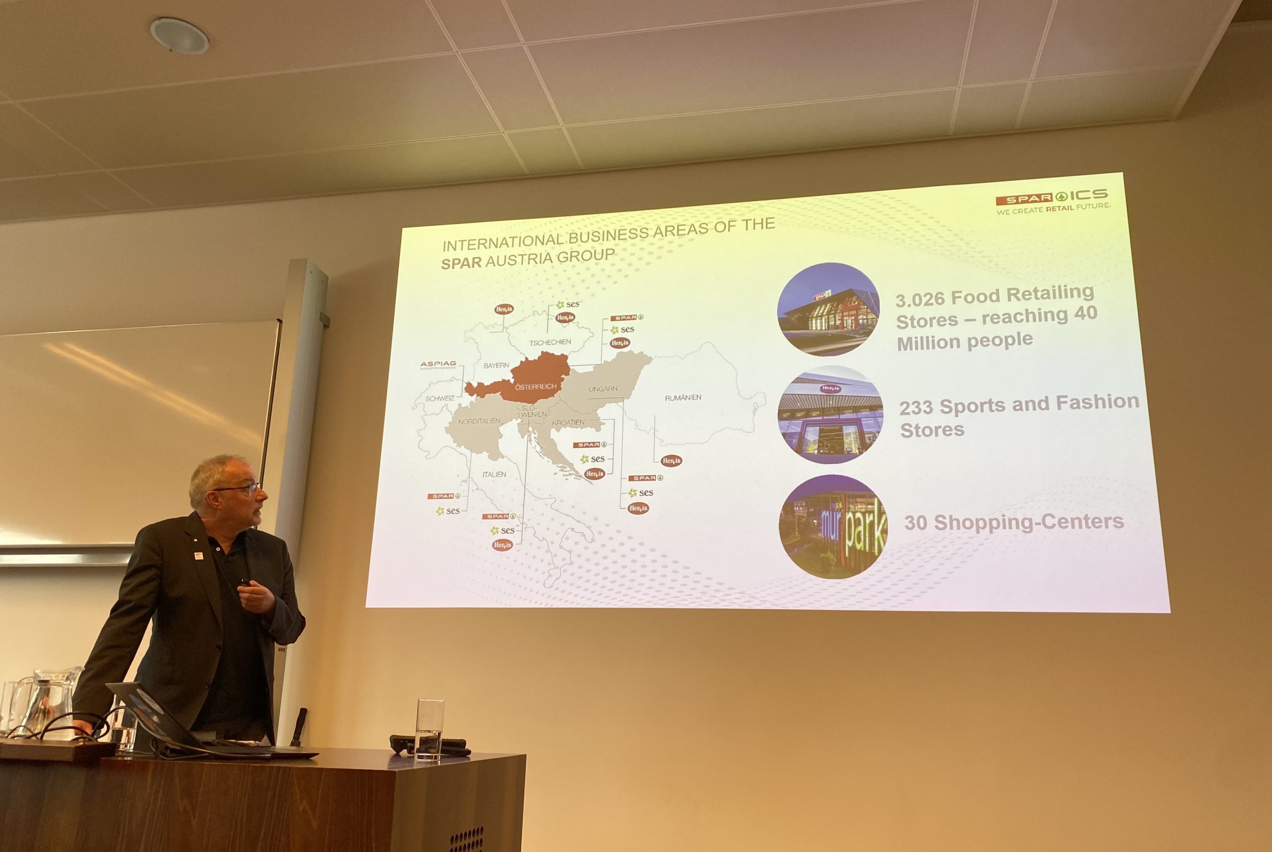 Die Vortragenden erklärten wie bestehende Technologien in neuen Geschäftsfeldern angewendet werden können, um neue Geschäftsmodelle zu schaffen und warum eine Validierung dieser notwendig ist, um das Risiko des Geschäftsmodells abzustecken. Die Spar ICS beschäftigt sich derzeit vor allem mit aktuellen Themen, wie “Unmanned Stores”, Robotik, Scan&Go oder Pre-Order-Systemen. Neben technologischen Anwendungen auf der Handelsfläche liegt aber großes Potenzial im Einsatz von Technologie im Außenbereich, um die Außenfläche der Handelsgeschäfte außerhalb der Geschäftszeiten nutzbar zu machen (z.B. Ladestationen oder Smart Lockers).