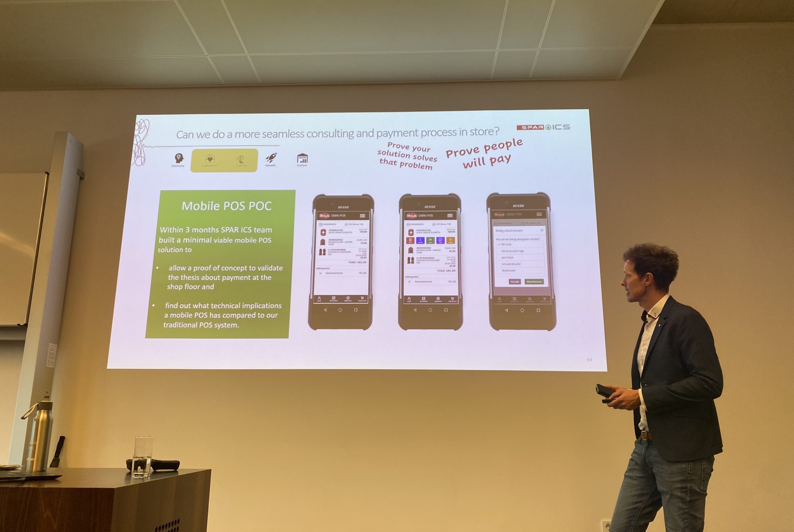 Die Berührungspunkte zwischen Kund*innen und Einzelhändler*innen sind sowohl analog als auch digital für die Vortragenden von hoher Bedeutung und so auch maßgeblich für die Arbeitsweise der Spar ICS. Zielgerichtet arbeiten sie zu einem “Unified Commerce” Konzept hin, das sowohl Mitarbeiter*innen als auch Kund*innen in einem vereinten Einzelhandelssystem einbezieht und auf einer nahtlosen Customer/User Experience basiert. Beispielhaft stellten die Vortragenden auch Projekte vor, darunter mobile Bezahlterminals für Mitarbeiter*innen von Hervis und Smart Watches für Logistikmitarbeiter*innen, um die Warenübergabe im Lager zu erfassen.