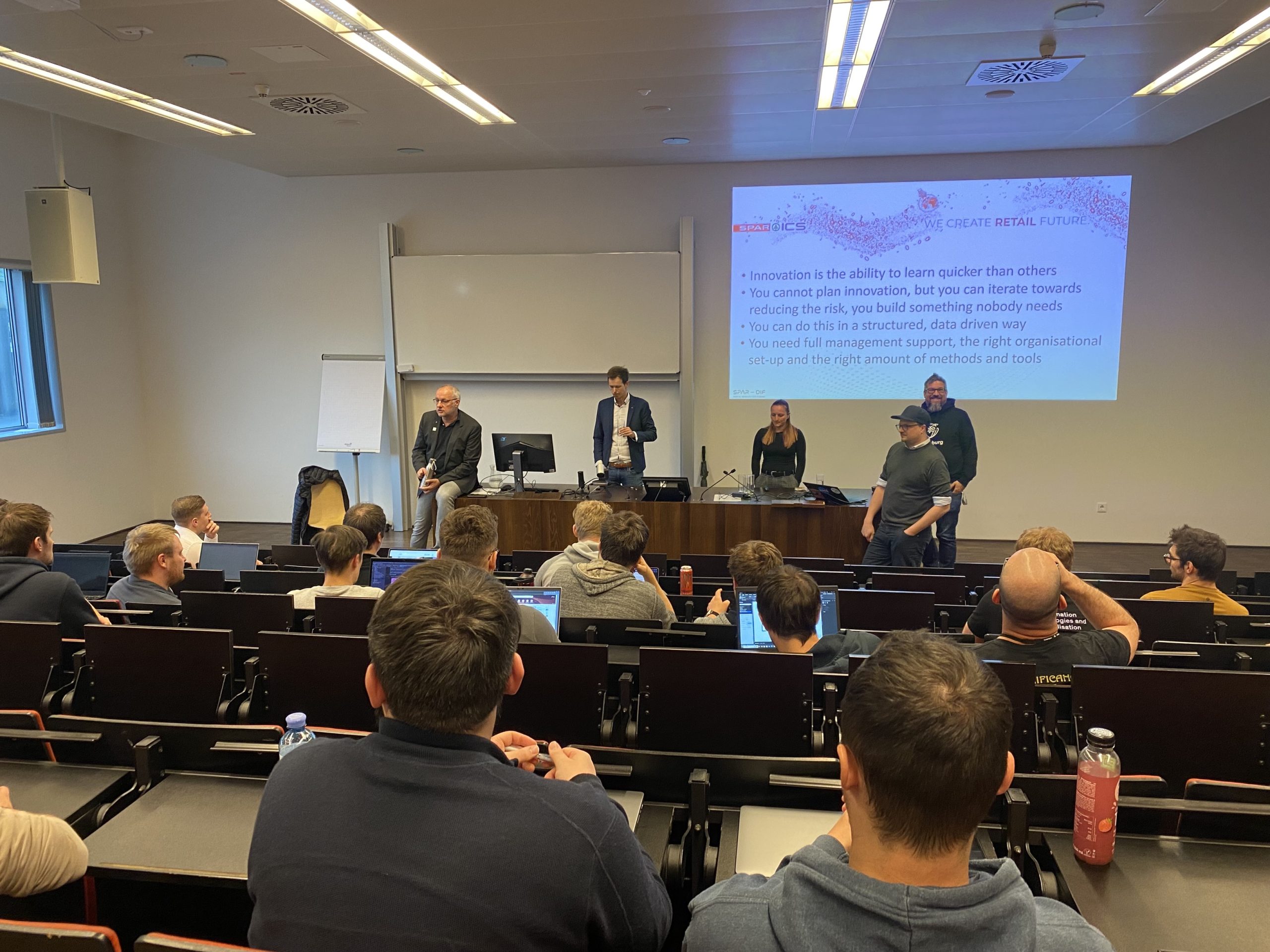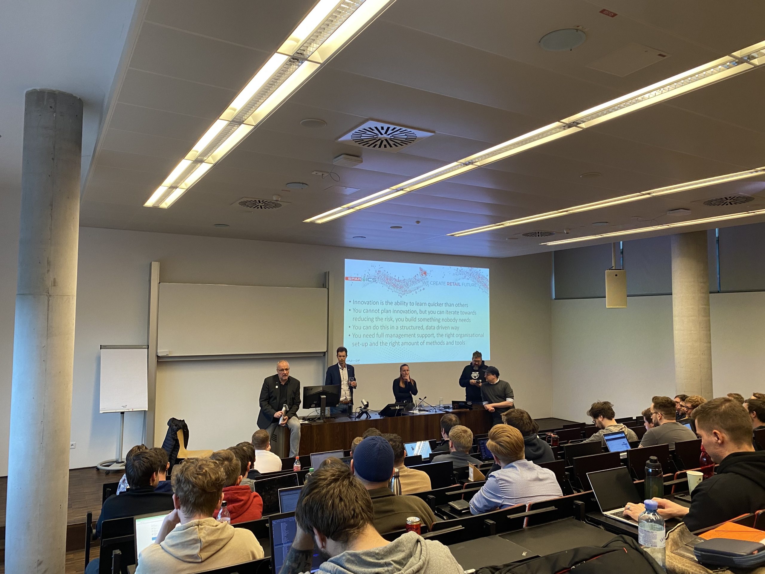 Im Rahmen der Ringvorlesung zum Thema “Technologie im Handel – wo bleiben da die Kund*innen?” gaben Eric-Jan Kaak, Julia Neunteufel und Michael Meike am 11.05.2023 Einblicke in die Arbeitswelt der Spar ICS. Die Spar ICS ist die IT-Gesellschaft der SPAR Österreich-Gruppe und beschäftigt sich mit IT-Themen von SPAR, INTERSPAR, Hervis, und SES (Spar European Shopping Centers). Der Vortrag drehte sich um Innovationsmanagement im Einzelhandel und richtete sich an Studierende, die sich für die Zukunft des Handels interessieren.